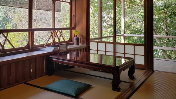 [Traveling By Car] Shoraian is located in a park under government ownership. No parking lots available. Traveling here by car, please find car parking available near Togetsukyo Bridge. (Parking Information Here)