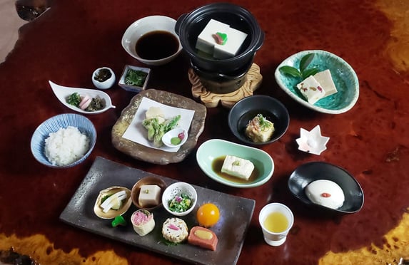 Carefully selected ingredients including Saga Tofu of Morika, and Fuyoh Kobayashi’s artistic inspiration for cooking will pleasantly surprise you with delicate colors and taste.
